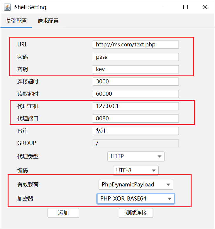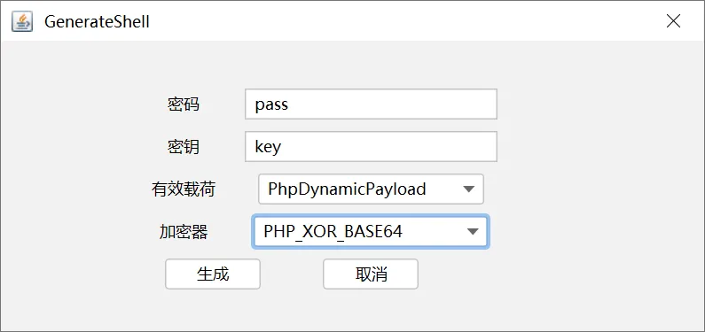 个人目前用的最多的PHP_XOR_BASE64类型的加密shell,因为自己有这类型的免杀,本文所用的shell主要配置都是默认的,如下: