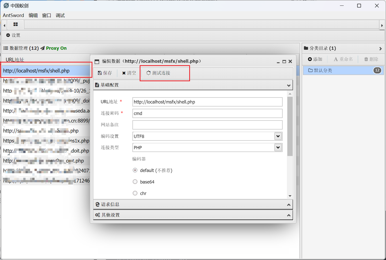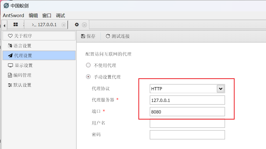 这里就使用burpsuite进行抓包,先将蚁剑配置好bp的代理,也可以用Wireshark或者yakit