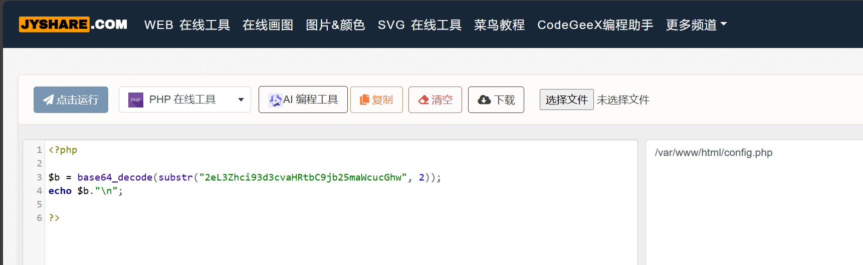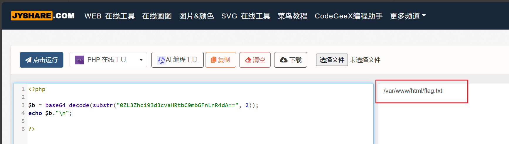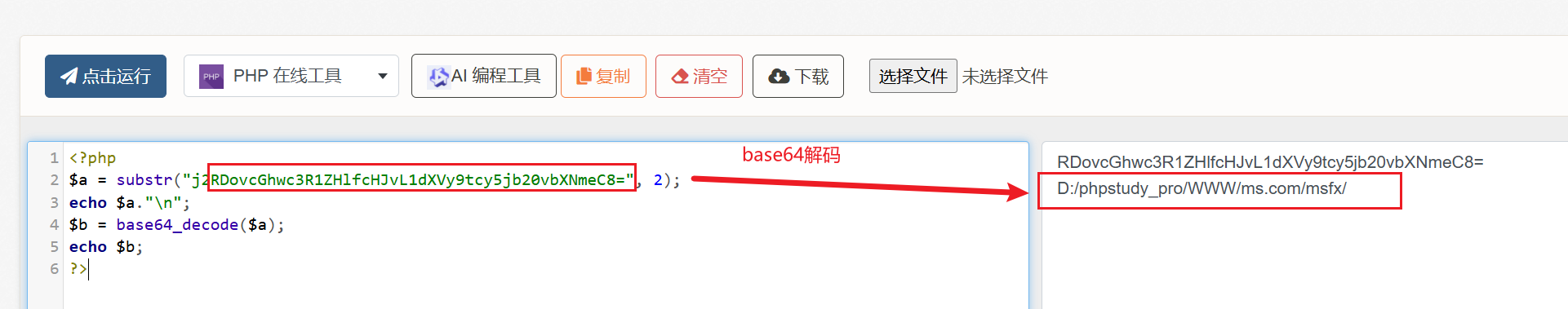 单独把新参数抠出来,原来是url编码后的,url解码之后,使用substr函数提取从第三个字符往后的所有字符然后进行base64解码,运行一下,得到的是当前的路径,也对应着第一个请求的返回包中的路径