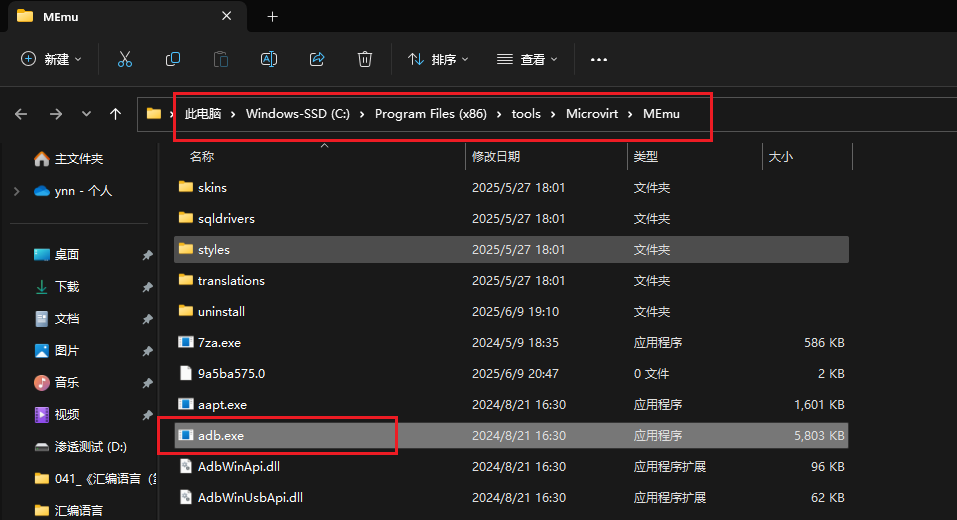 逍遥模拟器MEmu路径下自带adb调试,雷电模拟器在LDPLayer9文件夹下
