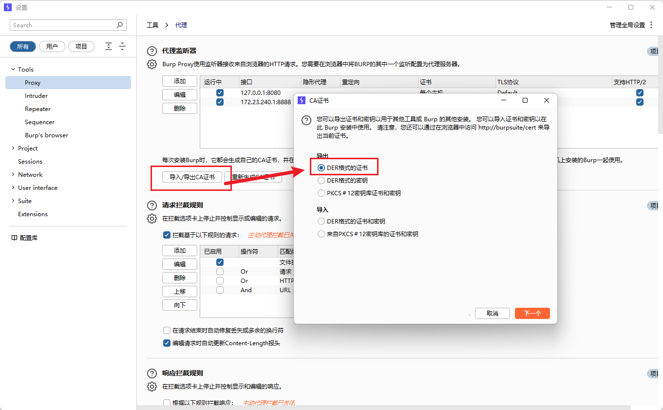 - 说明:DER 是二进制格式,PEM 是 Base64 编码的文本格式,包含 —–BEGIN CERTIFICATE—– 和 —–END CERTIFICATE—– 标记。